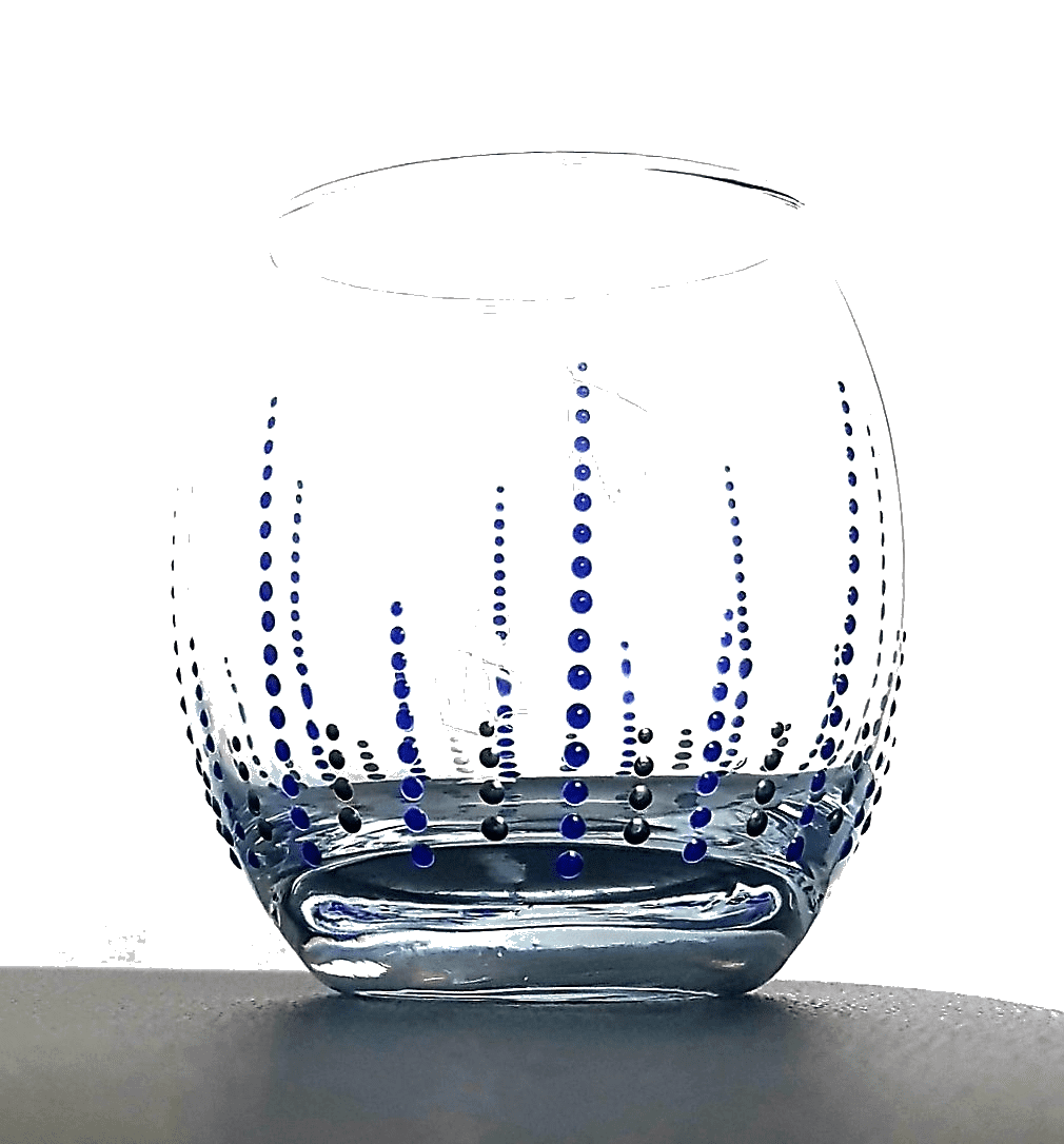 The bowl shaped glass is painted to order with a 3d dot design.